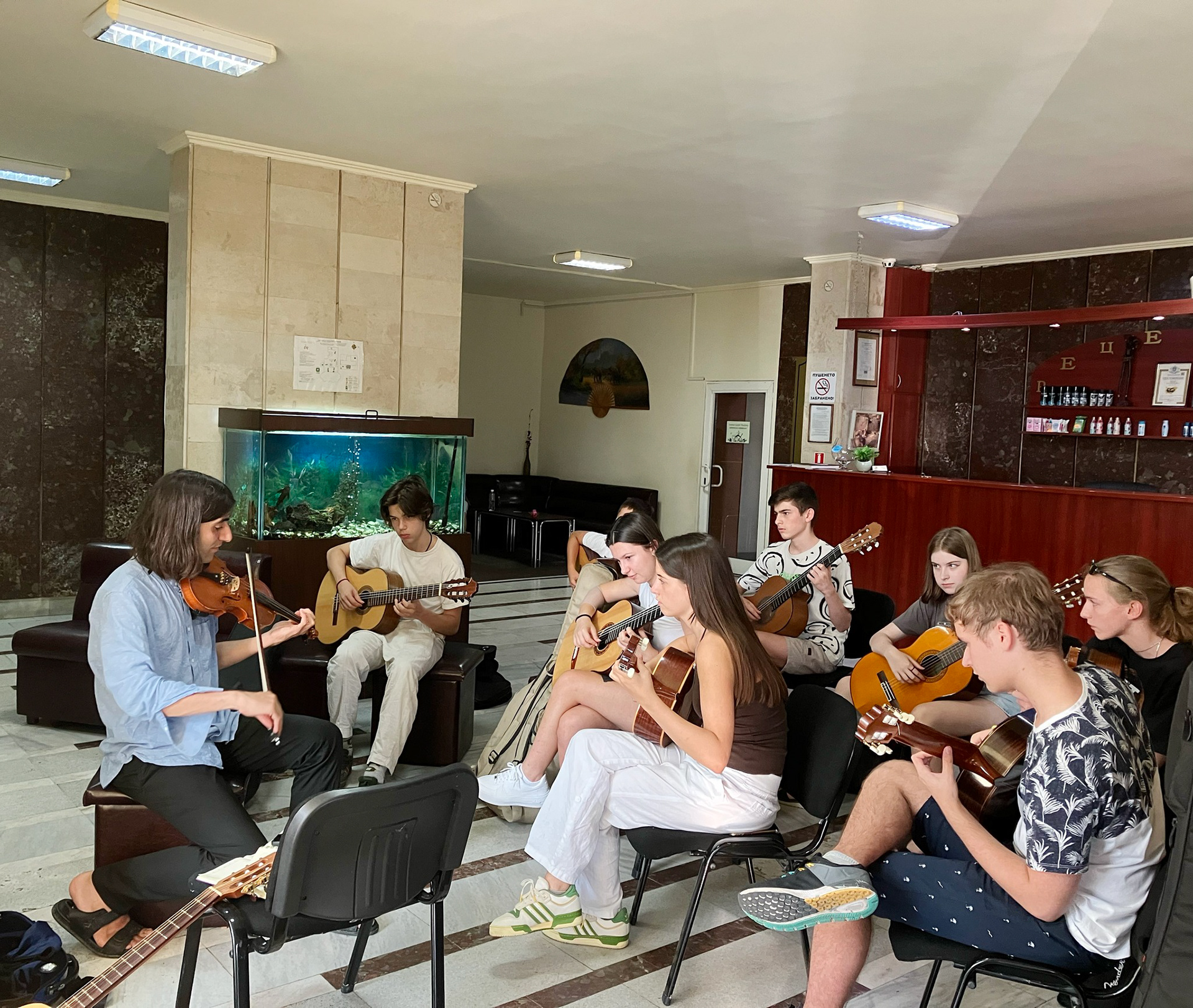 Интерактивни занимания с китара и музика, насочени към развиване на креативност, работа в екип и забавление.
